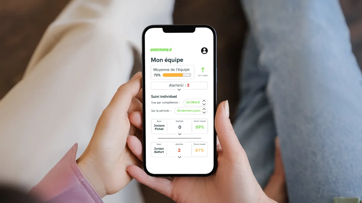 Vous souhaitez recruter sur des compétences commerciales réelles, entraîner vos vendeurs face à une IA qui joue le rôle du prospect et piloter leur progression avec un suivi managérial clair et structuré.